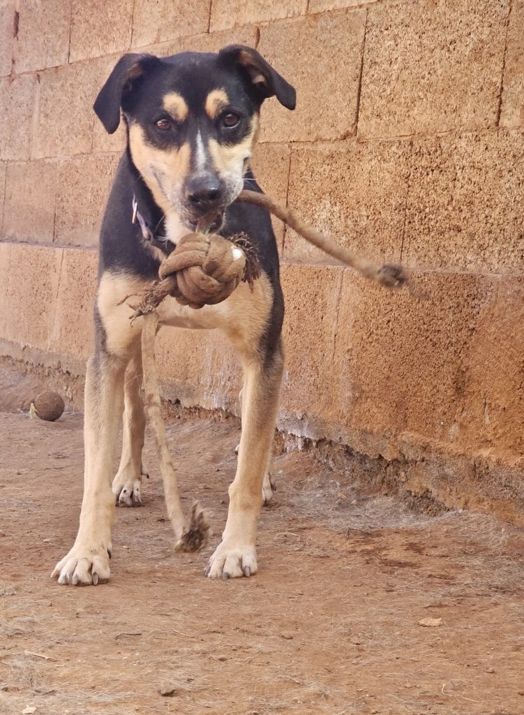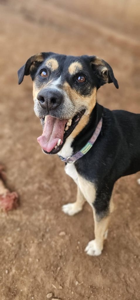 Tata es una preciosa mestiza nacida en abril de 2016 que sigue teniendo el alma de una cachorra. Con su carácter noble, cariñoso y juguetón, es la compañera ideal para quienes buscan alegría y amor incondicional.